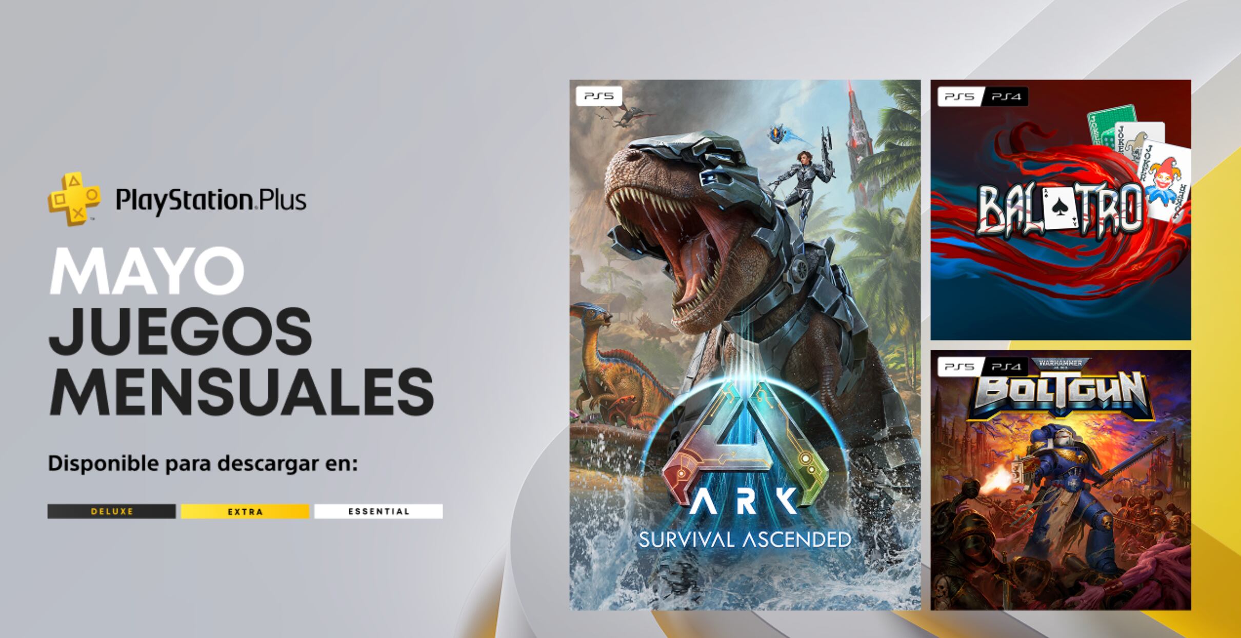 Combina barajas de cartas y gana a lo grande, doma dinosaurios para sobrevivir a una isla paradisíaca y viaja al futuro distante para disfrutar de acción retro de disparos con el catálogo de juegos mensuales en PlayStation Plus de mayo. Ark: Survival Ascended, Balatro y Warhammer 40,000: Boltgun estarán disponibles para miembros de PlayStation Plus.