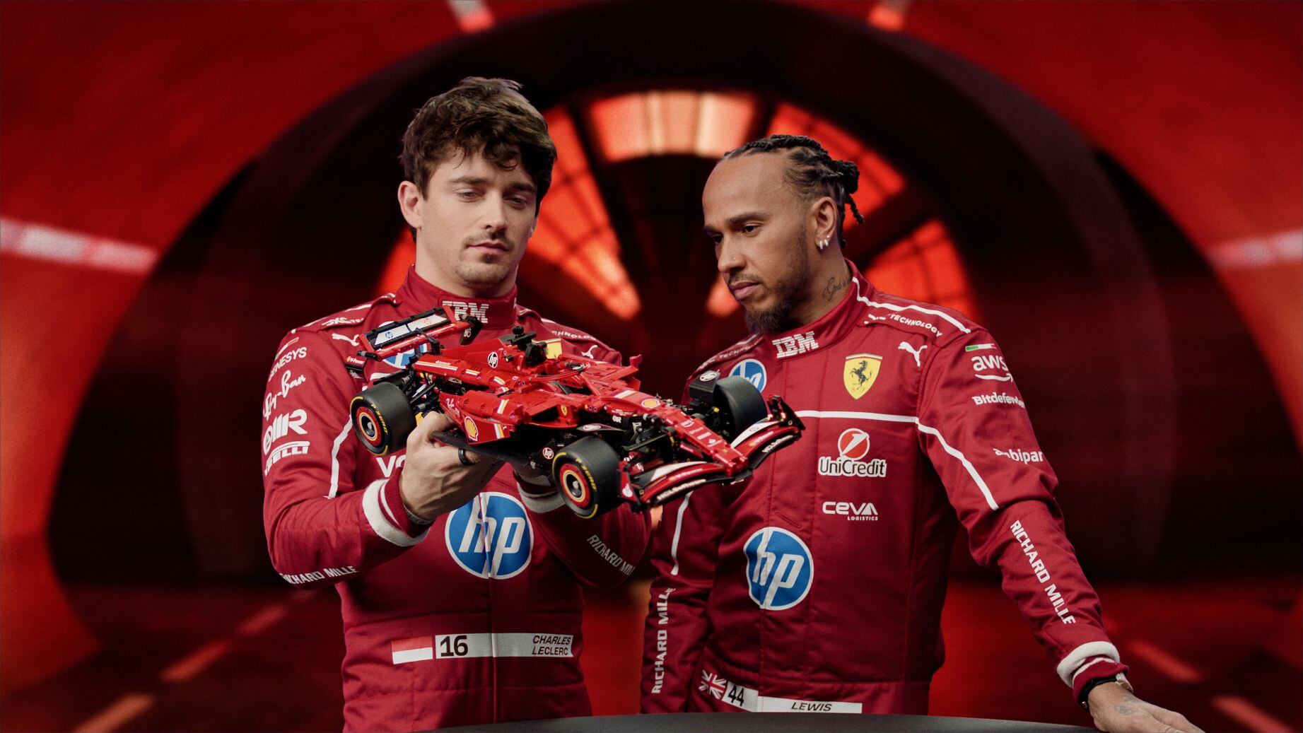En una inédita colaboración que une el mundo de la ingeniería automotriz con la creatividad lúdica, LEGO y la Scuderia Ferrari HP presentan un desafío tan veloz como ingenioso. Los pilotos de Fórmula 1 Lewis Hamilton y Charles Leclerc, junto con el director del equipo, Fred Vasseur, protagonizan un nuevo y dinámico video donde se enfrentan al reto de armar el modelo LEGO Technic Ferrari SF-24 dentro de un túnel de viento de bloques de la marca especialmente diseñado para la ocasión.