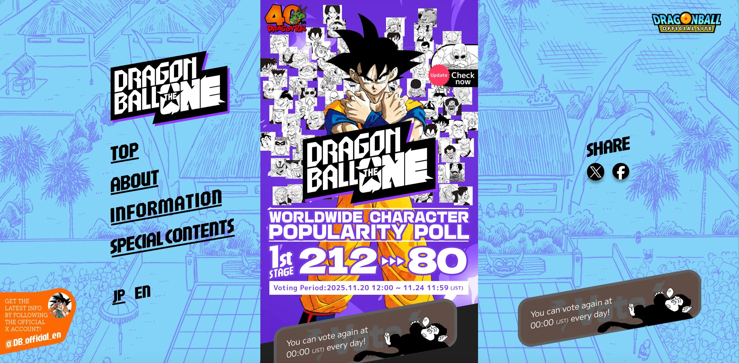 Te dejamos AQUI el link: https://db1.dragon-ball-official.com/en/