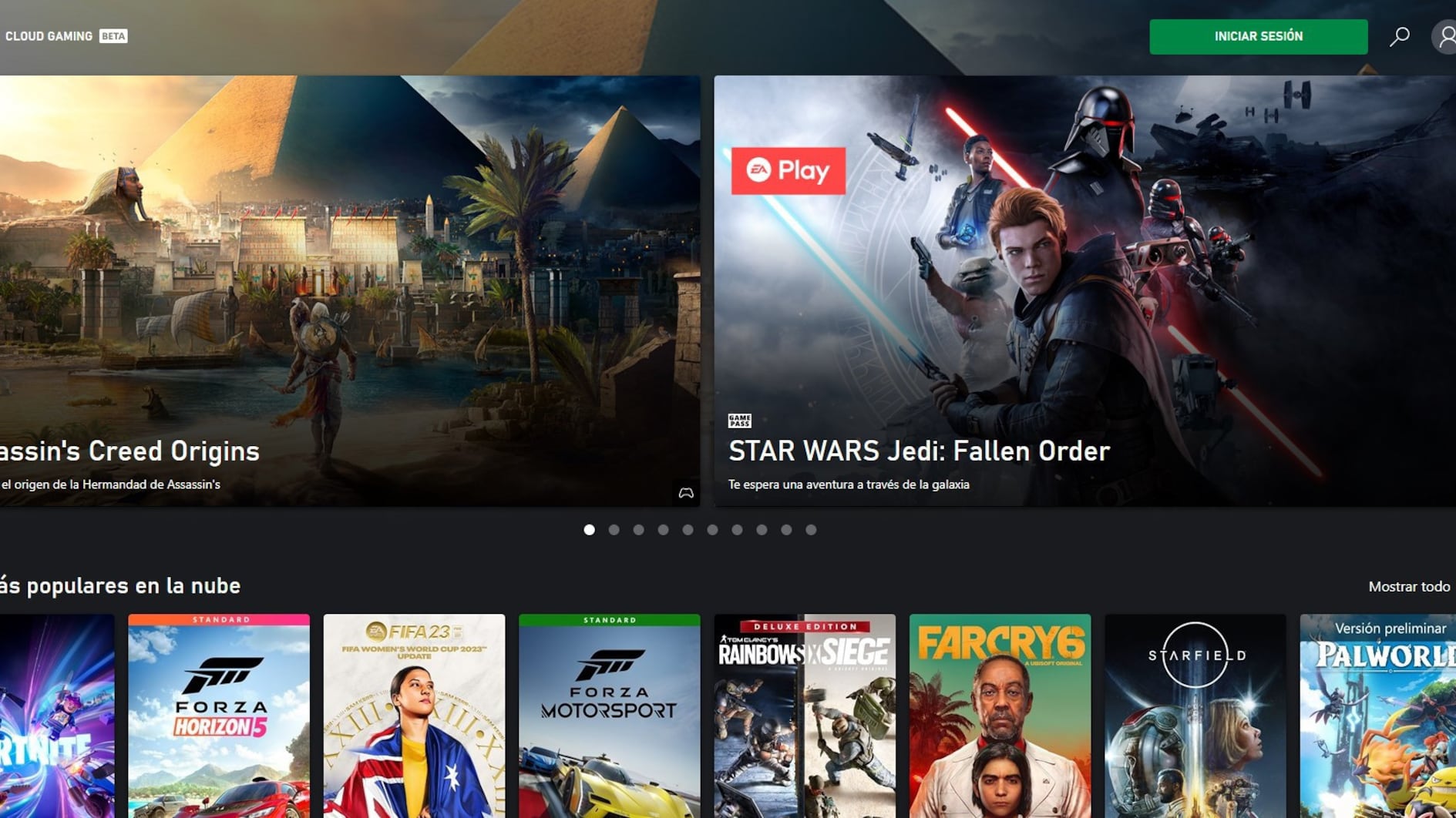 La plataforma Xbox Cloud Gaming en versión web. XBOX
