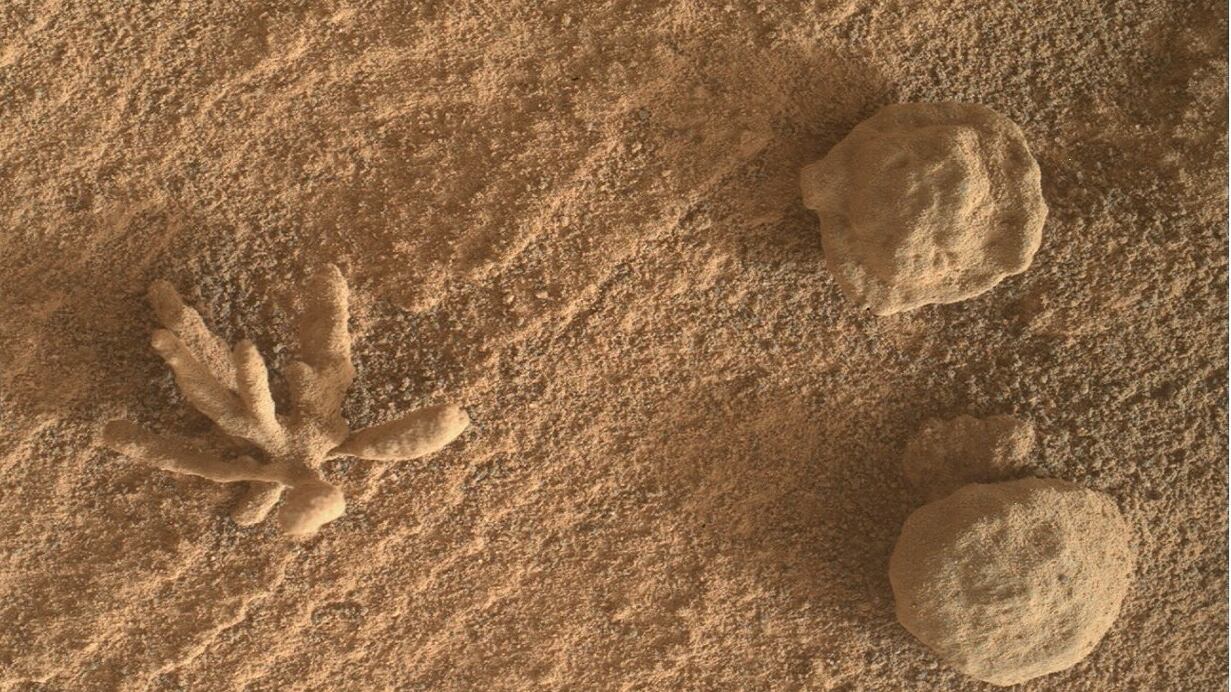 Según lo que se aprecia en las mismas imágenes que comparte la NASA, la formación que se posa en el suelo del planeta rojo, tiene aspecto de flor. Pero los científicos lo comparan con una especie de elemento orgánico.
