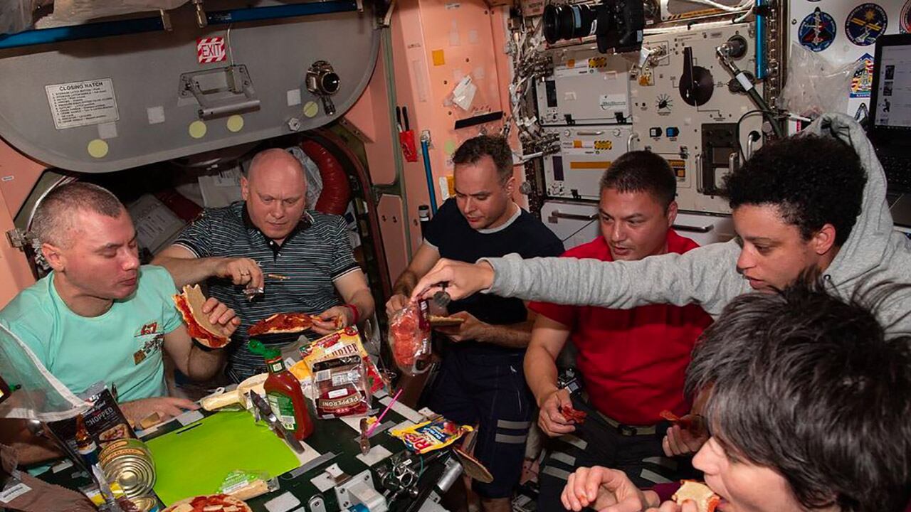 A más de 400 kilómetros sobre la Tierra, los tripulantes de la Estación Espacial Internacional disfrutaron de una fiesta de pizza por cortesía de la NASA.