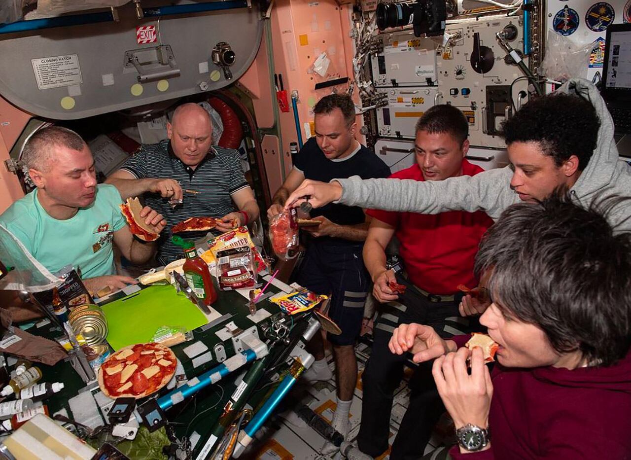 A más de 400 kilómetros sobre la Tierra, los tripulantes de la Estación Espacial Internacional disfrutaron de una fiesta de pizza por cortesía de la NASA.