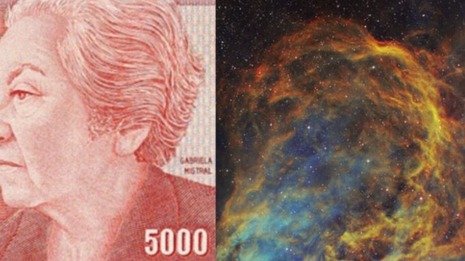 De hecho, la comparación del fragmento de la Nebulosa Carina se hace con el retrato de Mistral del antiguo billete de 5.000 pesos. El actual tiene otra imagen de Mistral.