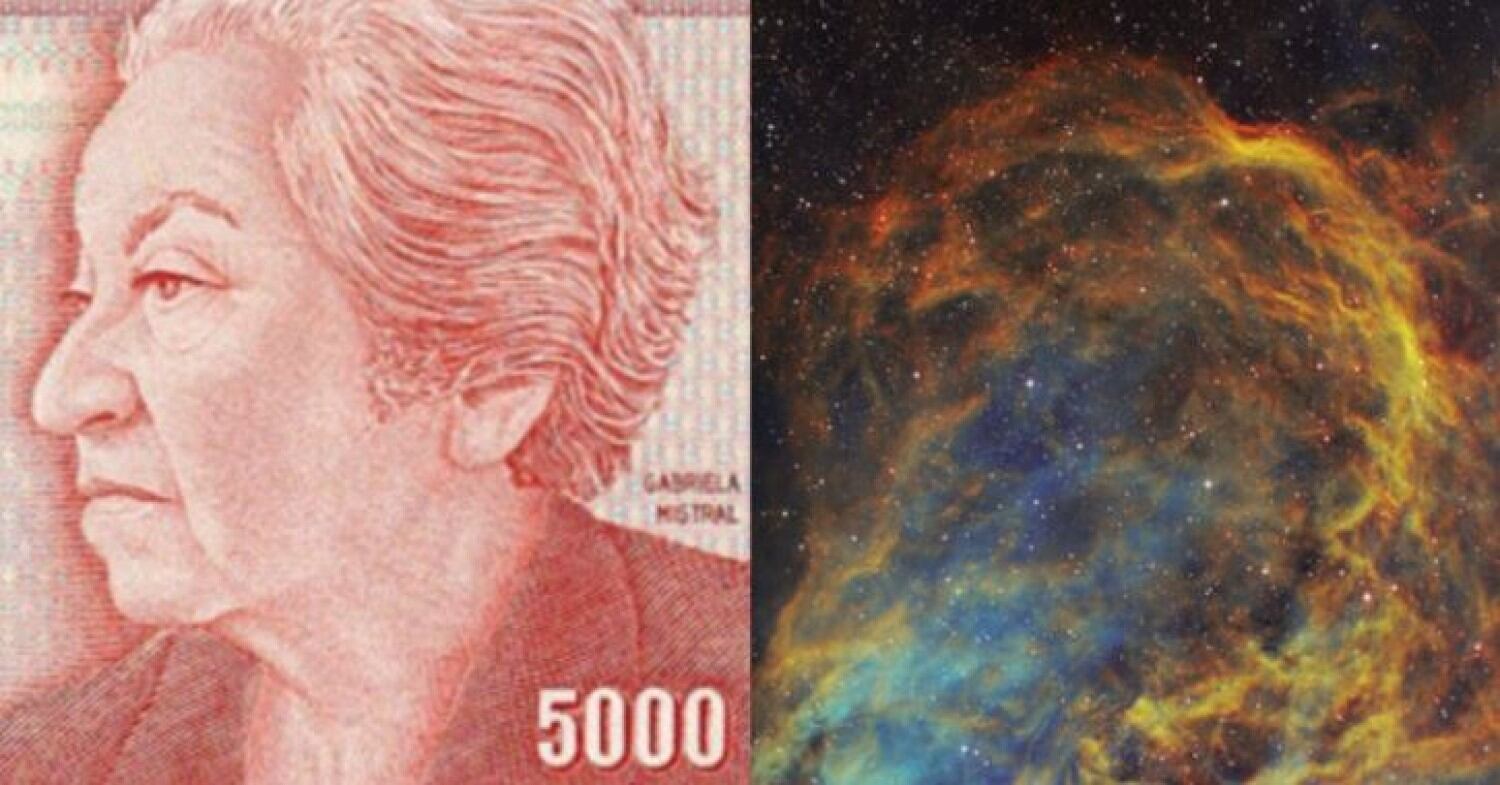 De hecho, la comparación del fragmento de la Nebulosa Carina se hace con el retrato de Mistral del antiguo billete de 5.000 pesos. El actual tiene otra imagen de Mistral.