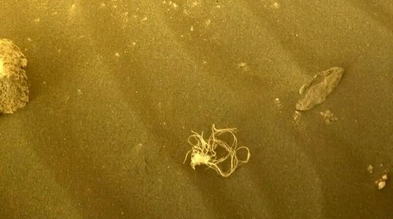 La NASA y otras agencias espaciales descontaminan las naves espaciales antes de enviarlas a misiones para evitar la propagación de microbios terrestres en el espacio, pero cuando aterrizan las naves o róvers, pueden dejar restos, como unas cuerdas enredadas.