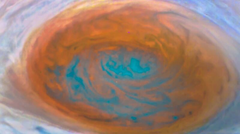 El satélite de la agencia espacial estadounidense logró visualizar que una de las manchas rojas del gigante gaseoso es en realidad una sorprendente tormenta.