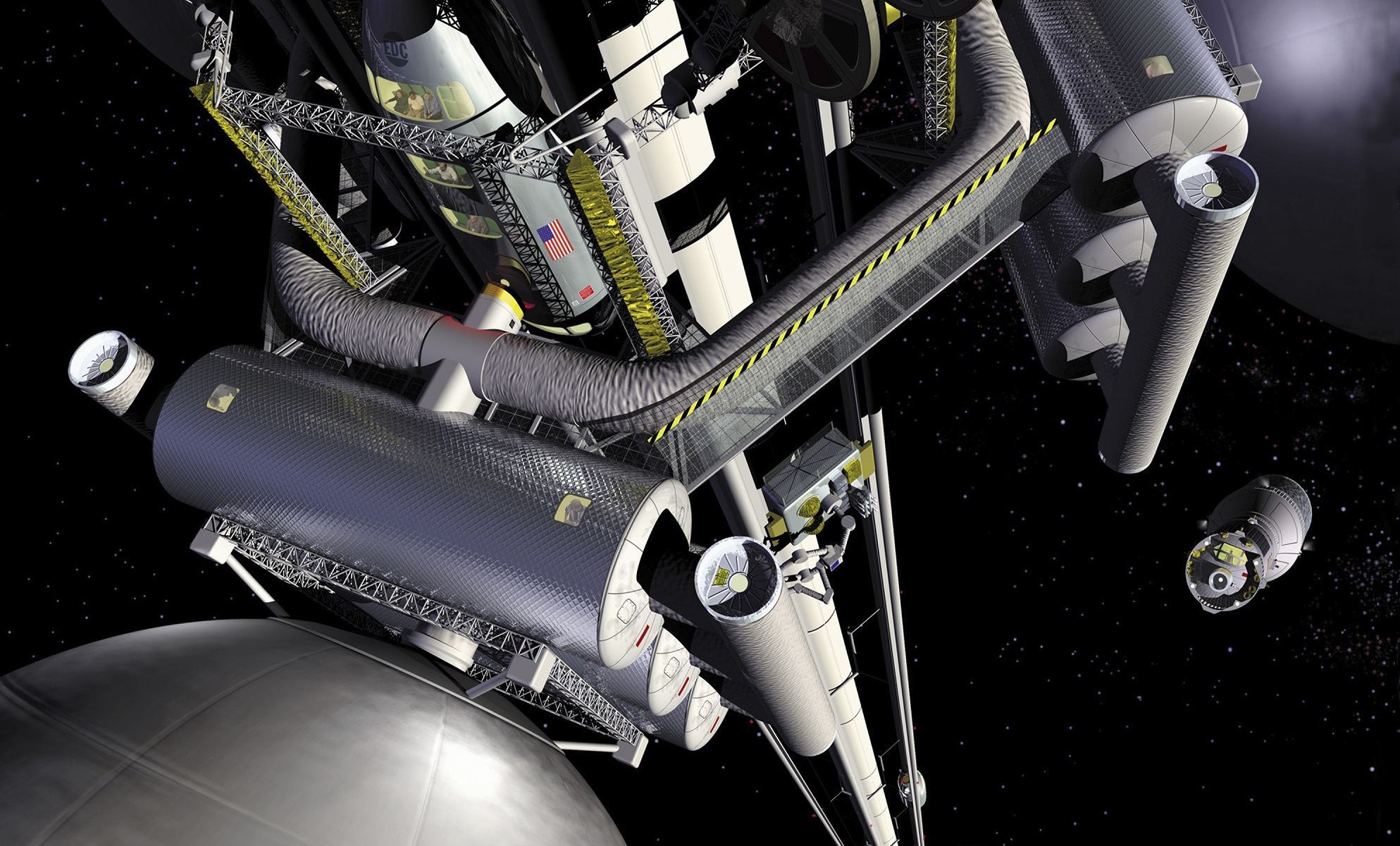 Según el diseño, cualquier persona interesada en ir a la Luna se lanzaría a la altura de la órbita correcta, sincronizándose con la punta de The Spaceline, alcanzando una estación.