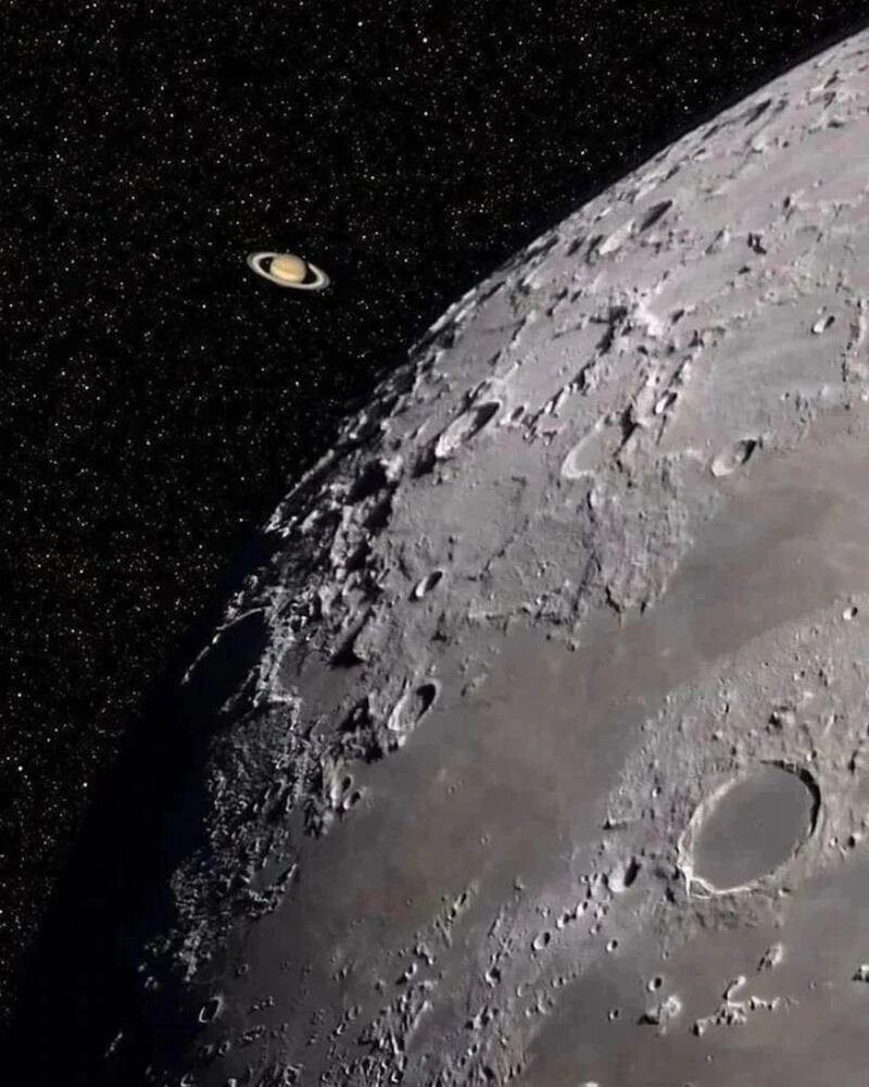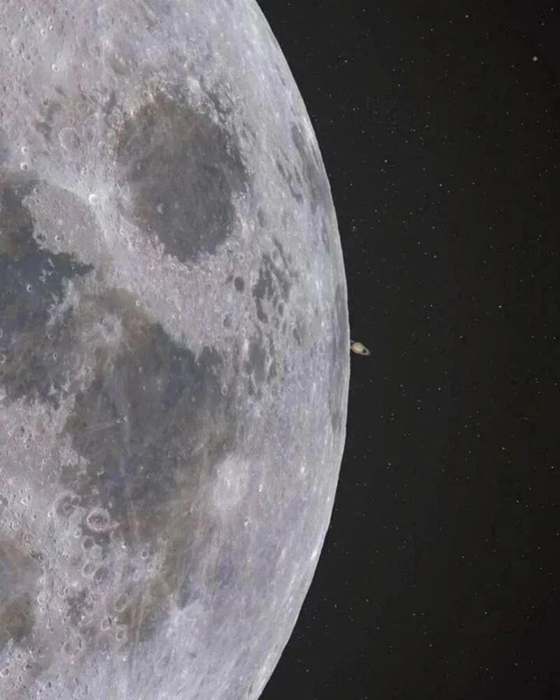 El Sistema Solar que habitamos es pequeño, si lo comparamos con la inmensidad de la Vía Láctea o el universo entero. Pero las distancias entre nuestros cuerpos celestes, gaseosos y rocosos son, para nuestra escala, bastante grandes. Es por eso que tomar la nitidez de Saturno, sobre la ventana de la Luna, luce tan espectacular en estas fotos y videos que publican los genios de SpaceRockX.