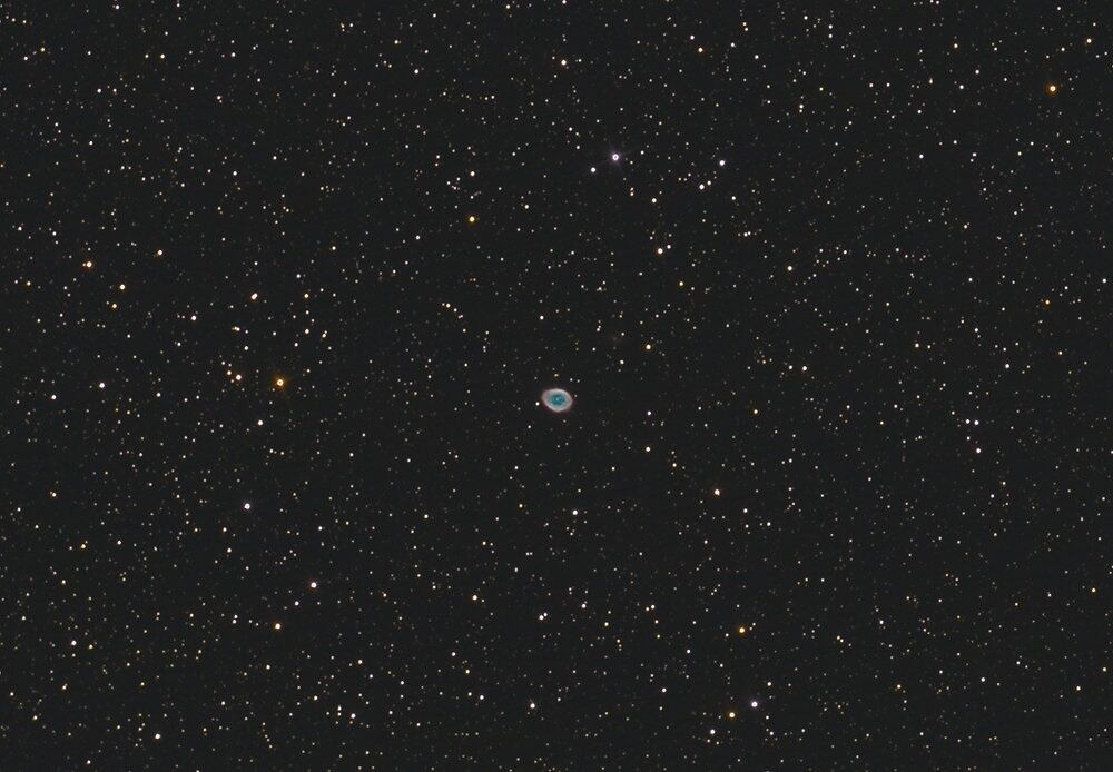 Las imágenes corresponden a una zona que se llama Messier 57, también conocida como la Nebulosa del Anillo o NGC 6720. Es un objeto astronómico notable en el cielo. Se trata de una nebulosa planetaria en la constelación de Lira. A pesar de su nombre, “nebulosa planetaria”, no tiene nada que ver con planetas; en realidad, es una etapa evolutiva en la vida de una estrella similar al Sol.