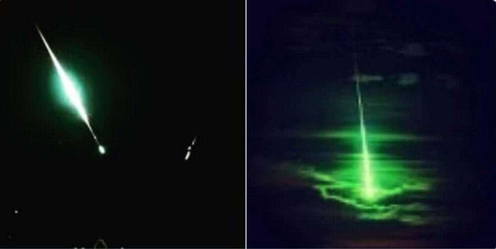 La estela verde del meteorito se aprecia en una serie de imágenes que publica Alerta 24 en su cuenta de X.