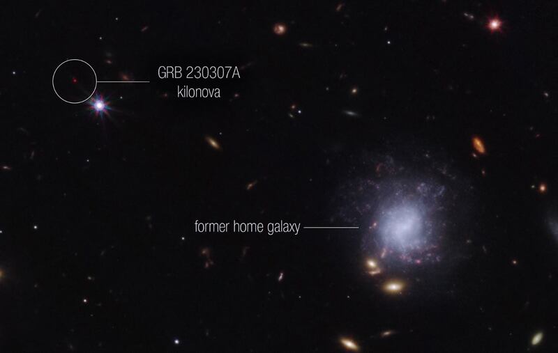 La potente kilanova generó un brutal estallido de rayos gamma al que identificaron como GRB 230307A, y fue allí en donde identificaron el elemento químico telurio y posiblemente el yodo, necesario para gran parte de la vida en la Tierra.