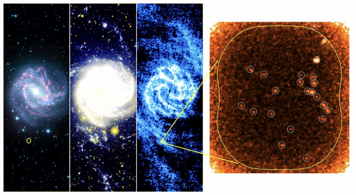 Y es que un equipo internacional de científicos logró identificar 23 agrupaciones de densas nubes moleculares, conocidas como “semillas” de estrellas, en una región periférica de la galaxia M83.