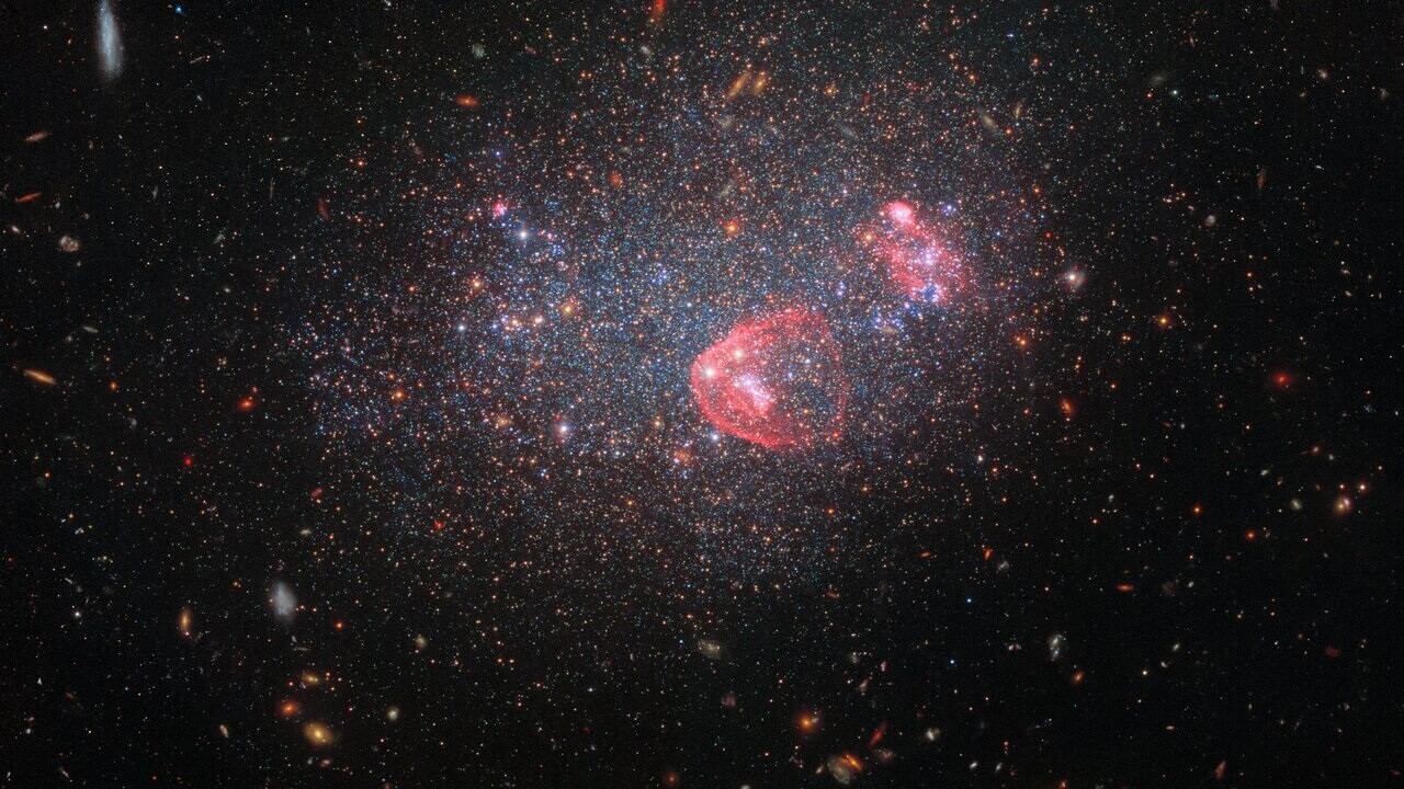 En las espirales barradas, una secuencia lineal de estrellas atraviesa el núcleo, visible aquí como una neblina vertical luminosa en NGC 275. Mientras tanto, las galaxias lenticulares, como NGC 274, se sitúan en un punto intermedio entre las elípticas y espirales, caracterizadas por su apariencia de disco cuando se observan de lado y conformadas principalmente por estrellas maduras con escaso gas y polvo.