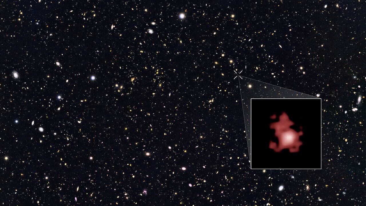 Se trata de la galaxia GN-z11, la más lejana detectada en toda la historia de la humanidad. Haberla encontrado con el lente del telescopio espacial fue un récord cuando la descubrieron en el 2016, ya que se encuentra a tan sólo 400 millones de años del Big Bang.