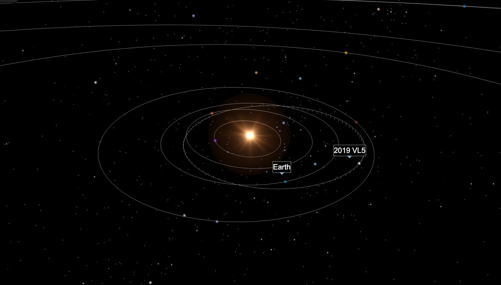 2019 VL5 orbita alrededor del sol cada 365 días. Según su brillo y la forma en que refleja la luz, 2019 VL5 probablemente tenga entre 0,012 y 0,053 kilómetros de diámetro, lo que lo convierte en un asteroide de tamaño pequeño a promedio, comparable en tamaño a un autobús escolar o más pequeño.