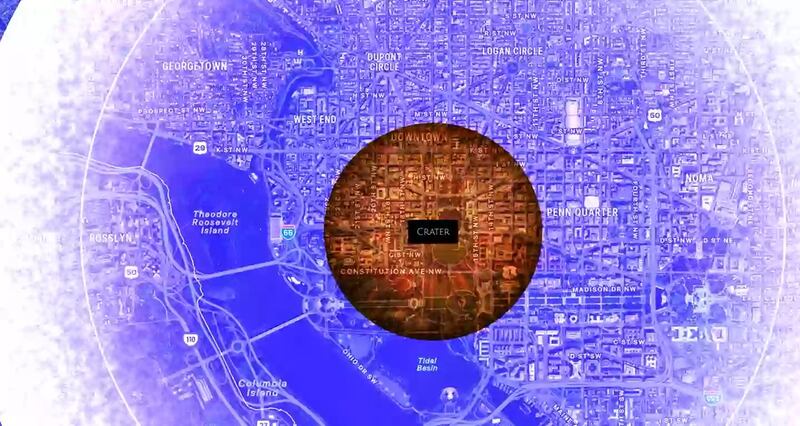 No se asombren con ese número bajo de víctimas, porque eso son las pulverizadas. En realidad, el impacto de un asteroide como este, en una ciudad como Washington, dejaría alrededor de 13.500 personas muertas.