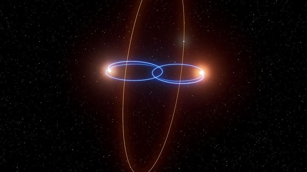 ¿Qué significa eso? Qué en lugar de ser como nuestro Sistema Solar, en la que los mundos orbitan al Sol por las fuerzas gravitacionales de su ecuador, en el caso de 2M1510, su único candidato a exoplaneta le da vueltas por la zona polar de sus dos estrellas masivas.