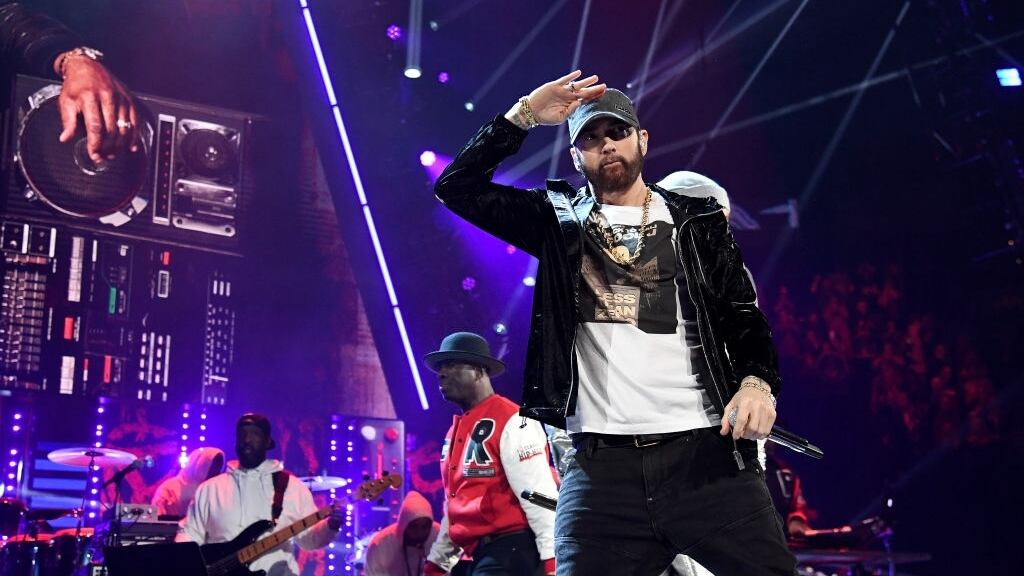 Nacido en St. Joseph, Missouri, en 1972, Eminem saltó a la fama por álbumes como Infinite (1996), The Slim Shady LP (1999), The Marshall Mathers LP (2000) y The Eminem Show (2002), entre otros.