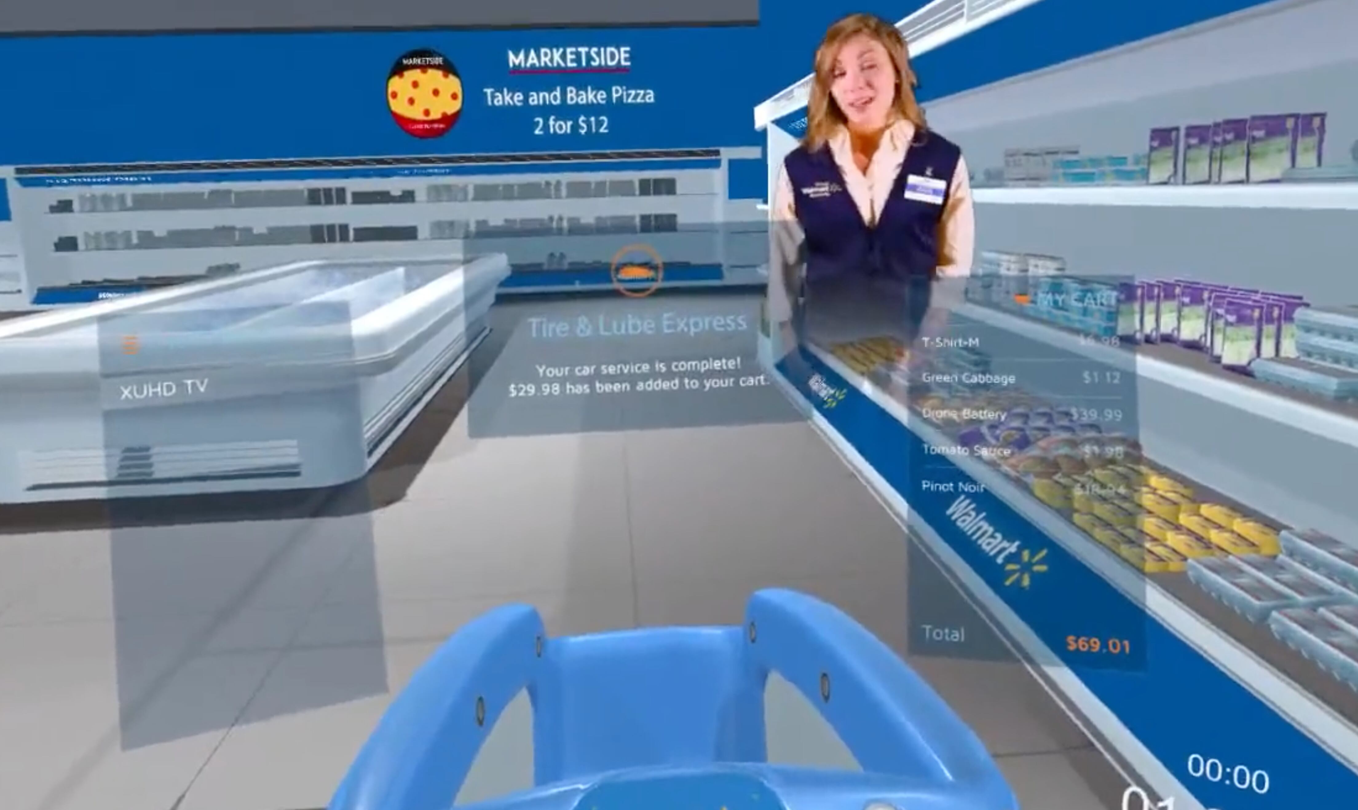 Un holograma llamado Módulo de Asistencia de Compra (SAM) asiste al comprador en el proceso. Al tener una lista de la compra en la que se registró la salsa de tomate, SAM teletransporta al usuario directamente a un pasillo virtual repleto de salsas de tomate. Elige un producto y la interfaz le muestra todos los detalles del producto.