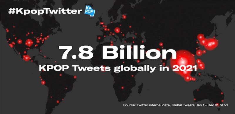El 2021 demostró que el k-pop está abriendo las puertas de Corea del Sur hacía el mundo y en ese mismo año, la plataforma de Twitter alcanzó récords inimaginables que llegaron hasta los 7.8 mil millones de tweets en todo el mundo durante 2021, mediante el hashtag #KpopTwitter, que unió a la conversación a millones de personas alrededor del mundo, sin duda el entretenimiento coreano va más allá de la música y también podemos destacar webtoons, películas, k-dramas y novelas, fácilmente podremos decir que el 2022 traerá más canciones y nuevos artistas listos para conquistar el mundo.