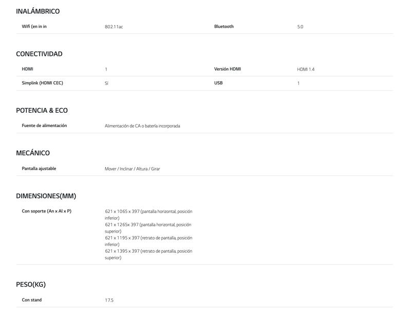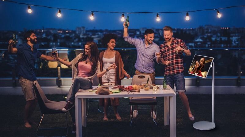 LG StandbyME es un televisor de pequeño tamaño con 27 pulgadas, montado en un soporte regulable en altura. Éste, tiene la capacidad para inclinar, girar o situar la pantalla en modo vertical. Cuenta con una batería integrada que ofrece tres horas de uso con una sola carga. Comprobado, pudimos ver una película sin problemas.