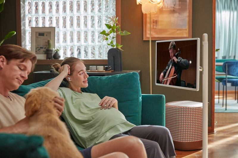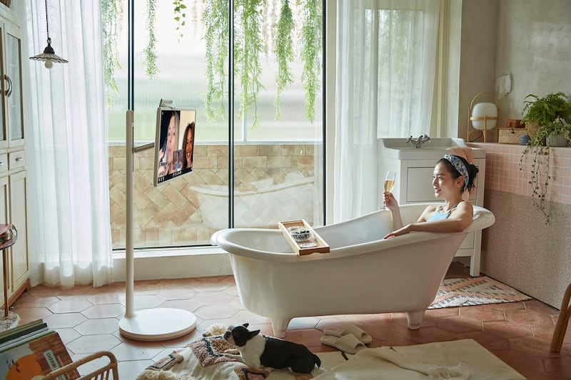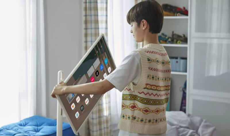 Se nos olvidaba comentar que su base tiene ruedas, por lo que puedes llevarlo fácilmente a distintos espacios de la casa. Y es precisamente así como LG lo propone: puede ser un compañero a la hora de cocinar, un televisor para estar en el sillón viendo películas, una pantalla para navegar en tus redes sociales desde tu cama y más.