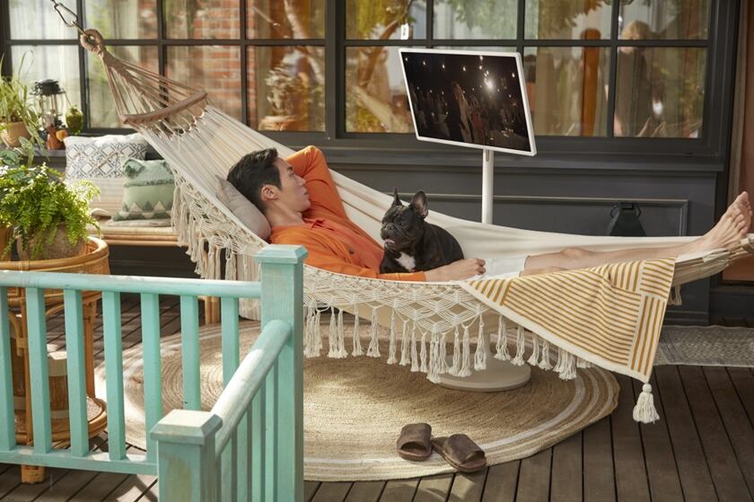 LG StandbyME es un televisor de pequeño tamaño con 27 pulgadas, montado en un soporte regulable en altura. Éste, tiene la capacidad para inclinar, girar o situar la pantalla en modo vertical. Cuenta con una batería integrada que ofrece tres horas de uso con una sola carga. Comprobado, pudimos ver una película sin problemas.