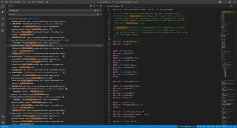En la imagen lo que veríamos serían las directivas C/C++ del software nativo de Samsung, esto representaría una parte medular del código fuente de los programas de arranque de la firma para las funciones de autenticación biométrica y el cifrado de dispositivo.