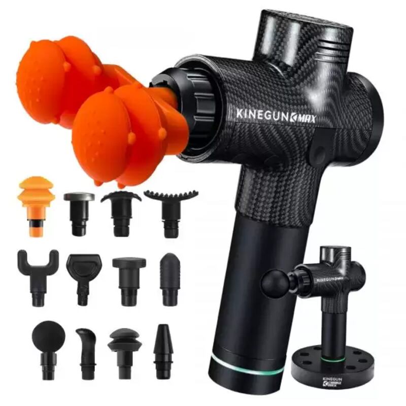 Pero eso no es todo, el modelo es bastante completo porque “además incluye otros 10 cabezales que permiten su aplicación en una amplia variedad de grupos musculares y de esta manera actuar efectivamente en el tratamiento de dolencias, lesiones y patologías. Sus 12 cabezales, hacen de la KINEGUN MAX, el top de linea. Además, incluye el NUEVO CHARGE DOCK, gratis”.