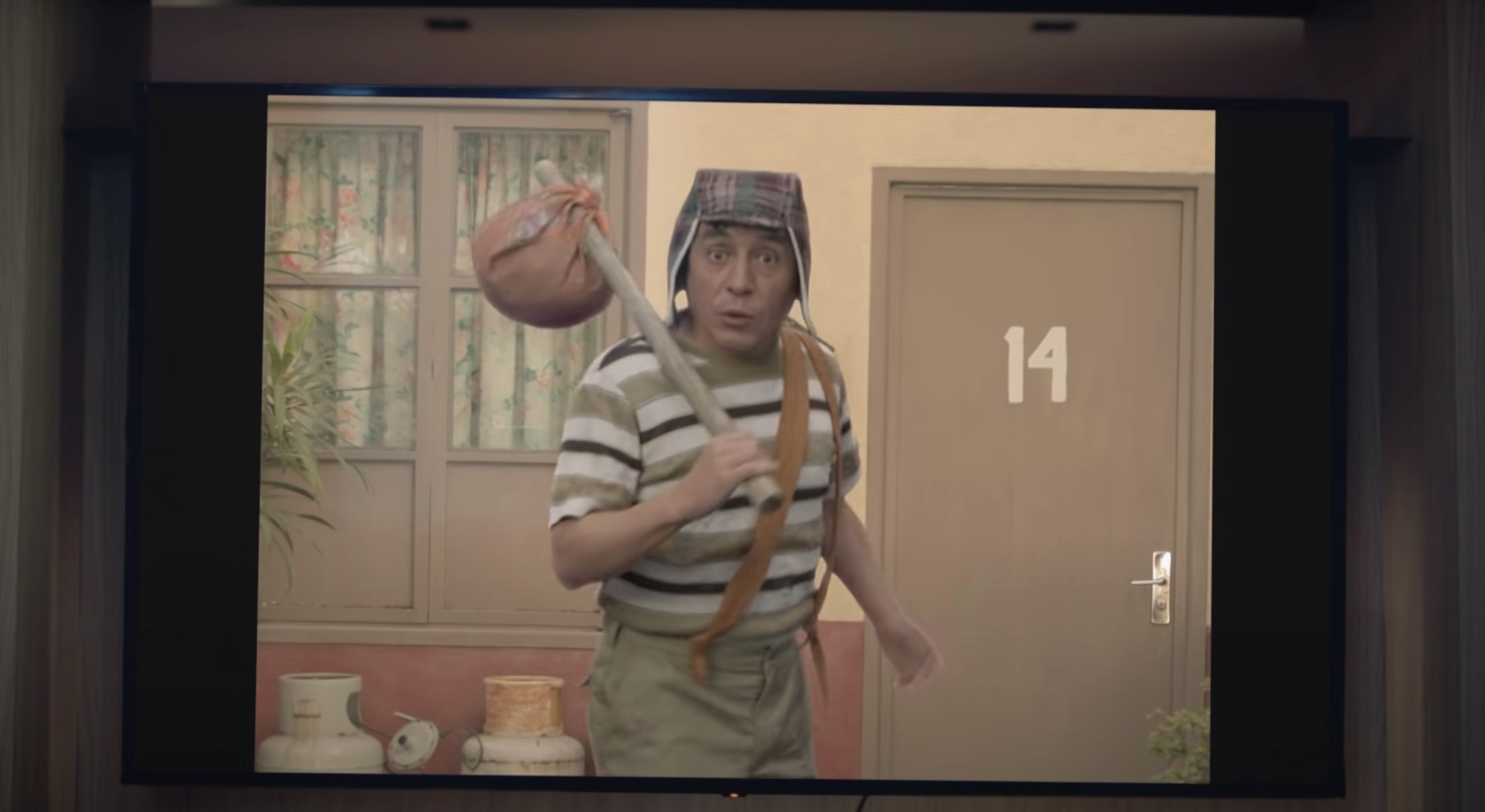 Mediante la tecnología del “Deep Fake” (que usa la superposición de rostros mediante una inteligencia artificial), el personaje de “Chespirito” conversa con el actor Eugenio Derbez.