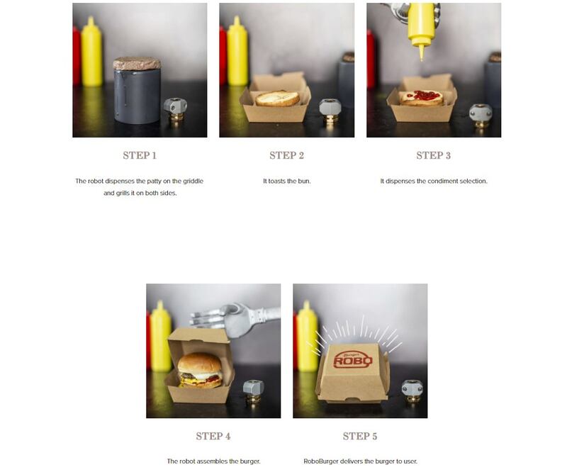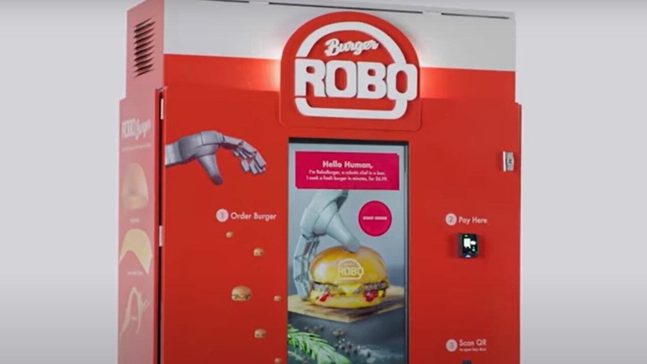 RoboBurger es el nombre de la empresa y el nombre de su principal producto: una máquina expendedora de hamburguesas. Igor Bonifacic de Engadget la descubrió en el Newport Center Mall de Nueva Jersey, Estados Unidos, y la ha descrito correctamente como un chef de hamburguesas autónomo.