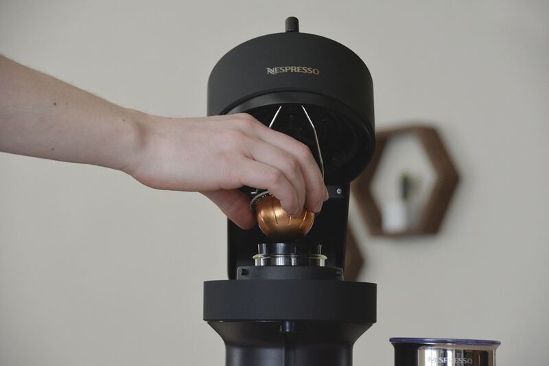 Hacer un café literalmente no podría ser más fácil: todo lo que tiene que hacer es elegir una cápsula, colocarla dentro de la máquina y presionar el botón que se encuentra en la parte superior de la máquina. La máquina Nespresso luego lee la cápsula y prepara su café. Desempaquetar y configurar el Nespresso Vertuo Next toma unos minutos y es muy fácil. Probamos esta máquina durante algunas semanas usando una variedad de cápsulas para tener una buena idea de qué tan bien funciona este modelo y la cantidad de bebidas diferentes que puede preparar con él.