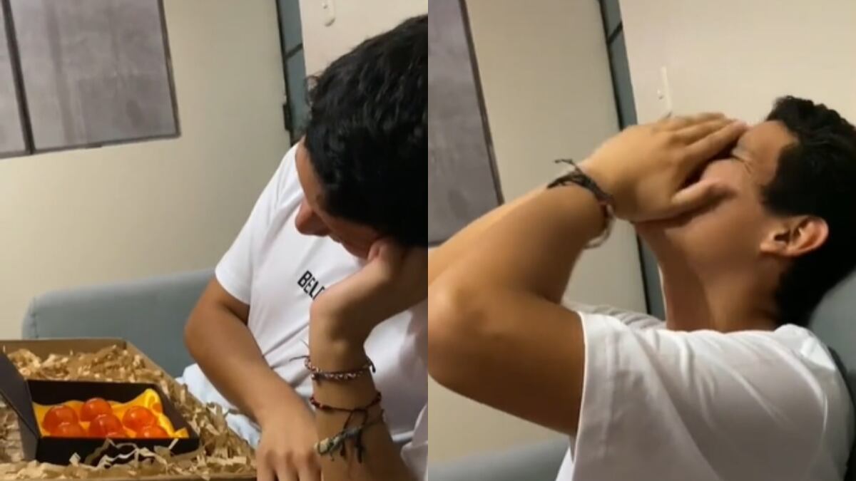 “El mejor regalo”, señala el video, en donde se ve al joven abriendo el presente.