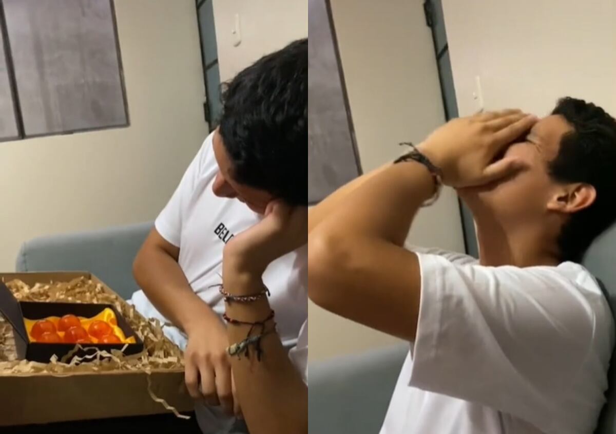 “El mejor regalo”, señala el video, en donde se ve al joven abriendo el presente.