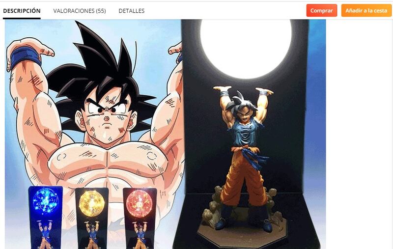- Lampara Genkidama: Es una lampara de Goku haciendo una Genkidama. Está alrededor de los USD $ 10-15. El precio aparece en la moneda local desde donde estén ingresando si lo hacen por PC o Mac y en dólares si lo hacen desde la aplicación en el celular Android o iOS.
