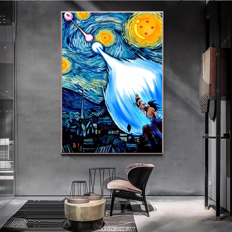 - Pintura al óleo: Una pintura de Goku lanzándole un Kame Hame Ha a Vegeta que cuesta menos de tres dólares. El envío es mucho más costoso (aproximadamente 10 dólares) que el producto.