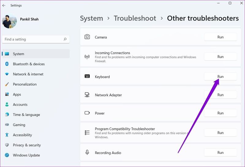 - Haga clic en el botón Ejecutar junto a Teclado y siga las instrucciones en pantalla para finalizar el proceso de solución de problemas.
