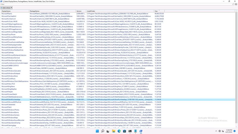 Utilizando la amplia variedad de accesos y datos proporcionados por la plataforma de PowerShell, el sitio pudo determinar los tamaños informados de las aplicaciones predeterminadas de Windows 11, para poder calcular el espacio que ocupan.
