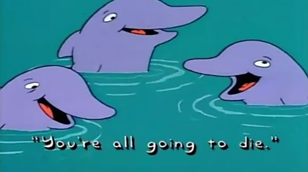 Muchos fanáticos recordaron un episodio en el que los delfines les declaran la guerra a los humanos. Es un segmento de La casita del horror XI (Treehouse of Horror XI en Estados Unidos), el 249, en la temporada 12.