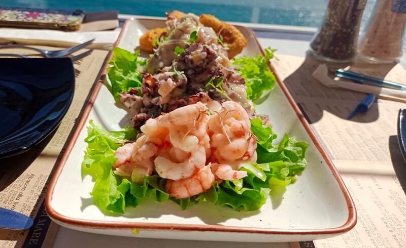 Mientras almorzaba, además de contar con un servicio de primer nivel en donde los garzones no solo conocían los ingredientes del menú sino que te asesoraban para que la elección sea perfecta, tuve la suerte de divisar en mi estancia en el lugar a una familia con 3 hijos menores de edad disfrutando de unos maravillosos Sorrentini di zucca (pasta rellena de zapallo, camote asado, ricota) mientras que en otra mesa, un grupo de amigos cerca de los 40 celebraba un cumpleaños con porciones bastante generosas de una degustación de maricos (Cipini Tutto).