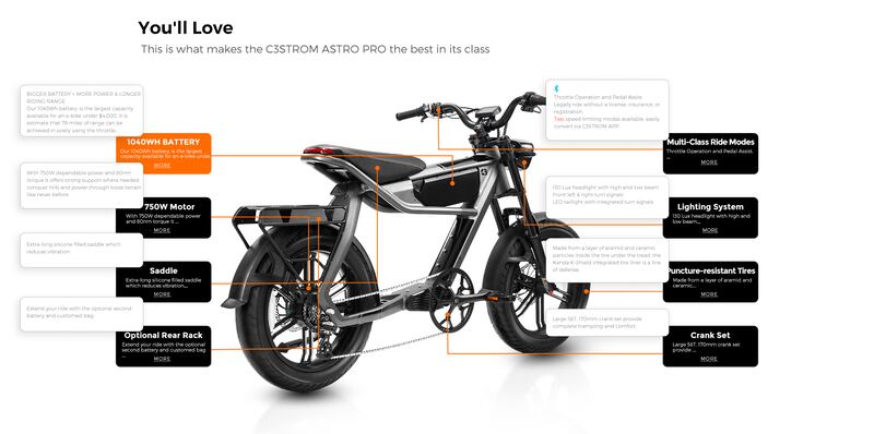 La nueva bicicleta eléctrica Astro Pro de C3Strom promete cambiar la forma en la que los ciclistas recorren las calles en bici, con una propuesta elegante, manteniendo los pedales pero funcionando como un scooter.