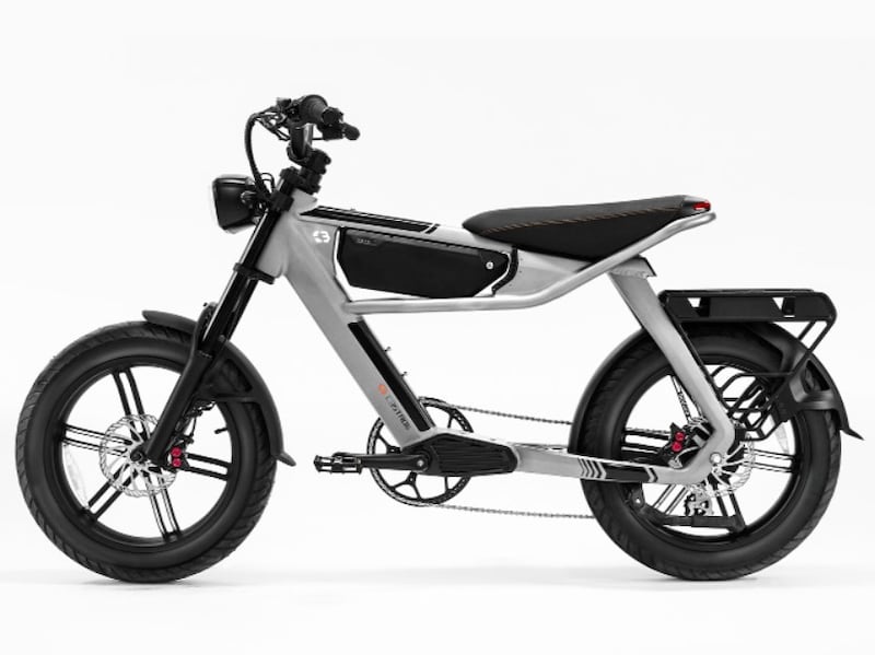 La batería de las bicicletas son extraíbles y se instalan en un riel debajo del larguero superior del marco. Esta bicicleta no tiene la intención exterior de ser utilitaria, ya que se centra directamente en divertirse con estilo. Está disponible en dos colores: gris oscuro y Future Silver.