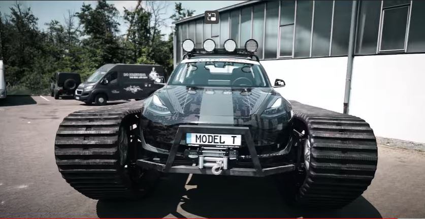 El resultado final es un vehículo Tesla de seis toneladas que se eleva a 80cm sobre el sueño y que tiene la capacidad de atravesar trincheras sin ningún problema.