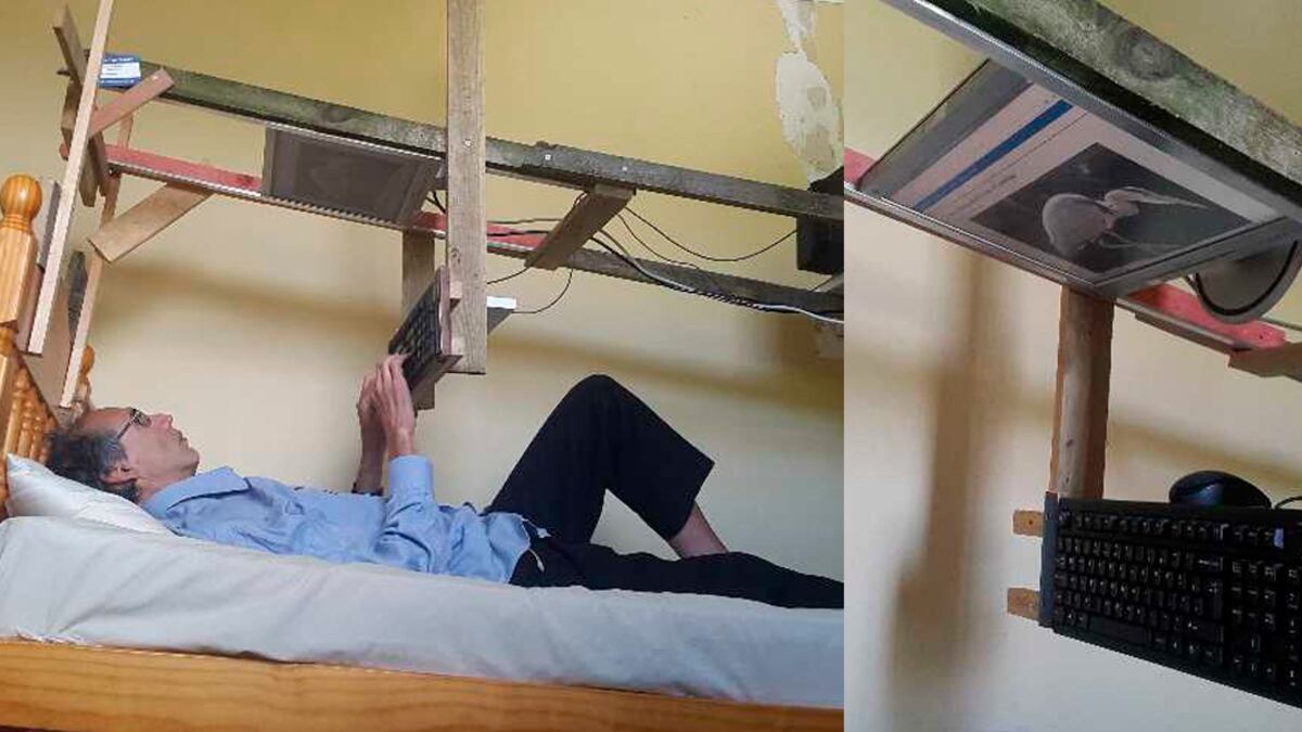 Resulta que este genio ha compartido a través del portal de Cambridge Clareon un artículo de investigación con los pormenores, detalles y planos para construir un estación de trabajo que permita utilizar cómodamente una PC desde nuestra cama.