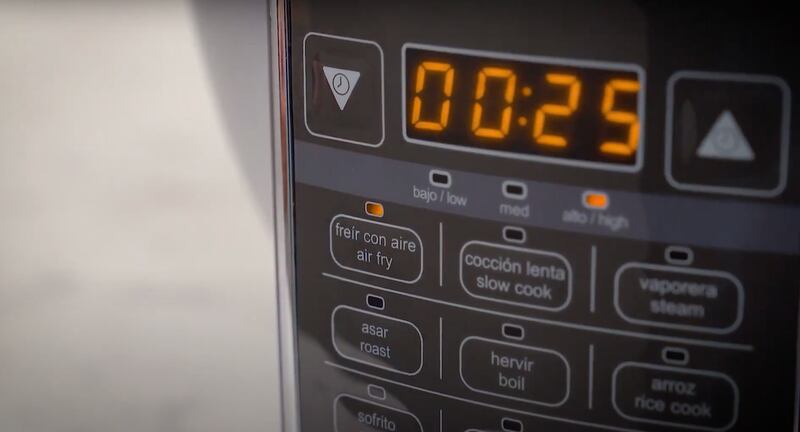 La siguiente función que se hizo parte de nuestro día a día fue la de sofrito. Lo presionas, pones solo una cucharada de aceite (el ahorro fue total) y pones a freír cebolla picada, pimentón u otras verduras. En ese mismo sofrito puedes incluir carnes y el resultado es increíble.