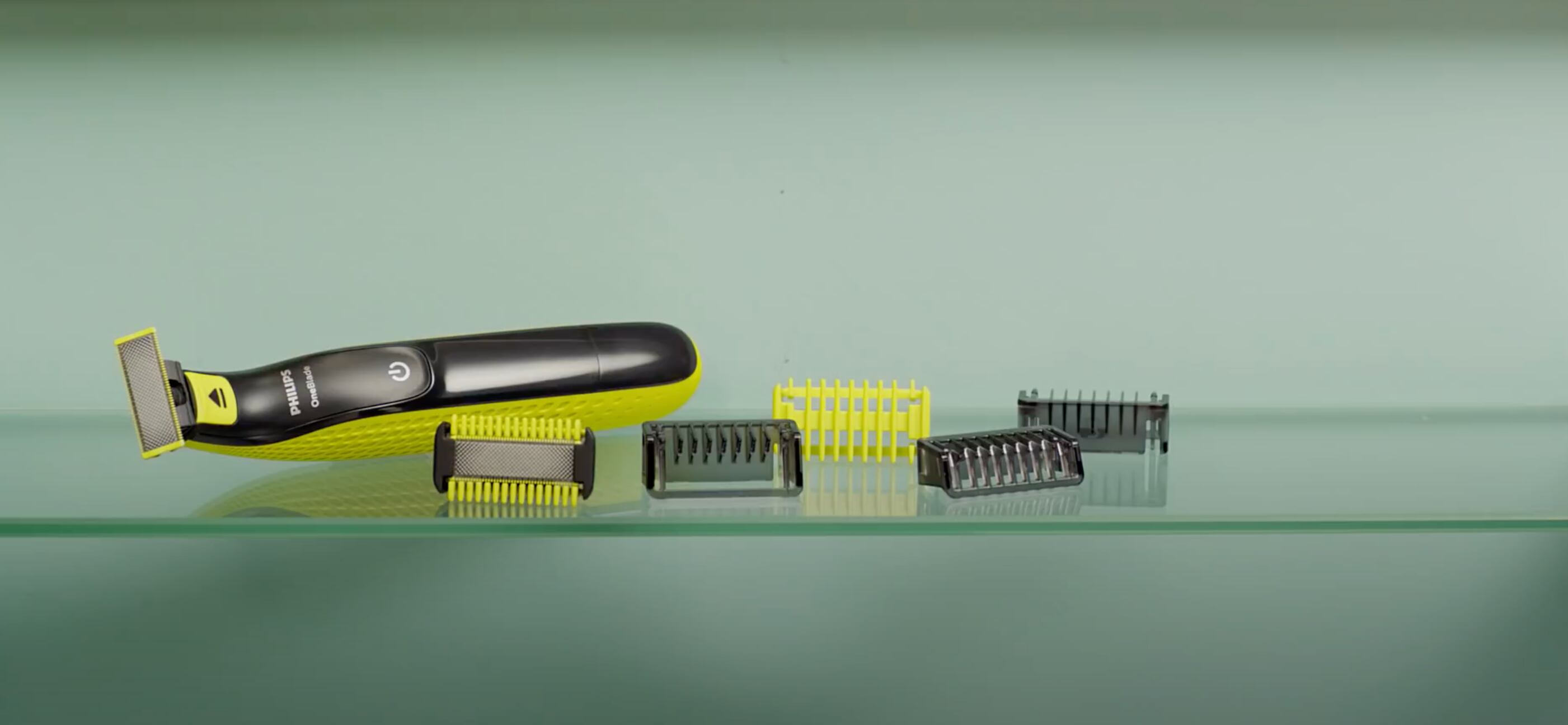 La nueva Philips OneBlade Face & Body incorpora 3 peines guía para el rostro (1, 3 y 5 mm.) para diferentes longitudes de barba, un peine adicional especialmente diseñado para el cuerpo y una cuchilla de repuesto, junto con una cubierta especial para proteger la piel, sobre todo en las zonas sensibles.