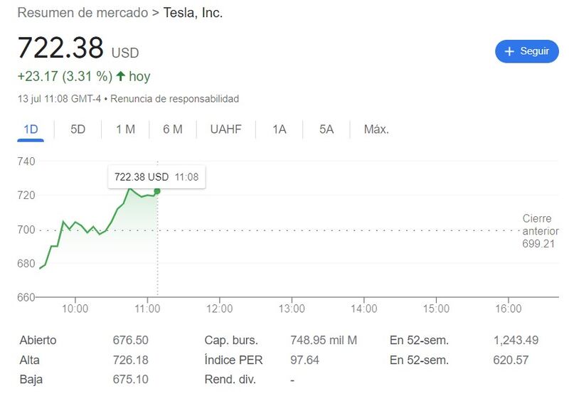 Este miércoles 13 de julio, las acciones de la compañía de autos eléctricos subieron un poco en comparación con las tendencias en el mercado los últimos días.