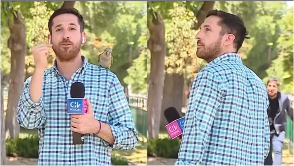 Quizás lo más bizarro del tema es que el comunicador que hacía un reporte en vivo desde los exteriores, estaba hablando del incremento de las cifras de inseguridad en Santiago de Chile. Justo en ese momento un loro se posó en sus hombros y cual ratero que te arrebata el celular, se llevó uno de sus dos auriculares.