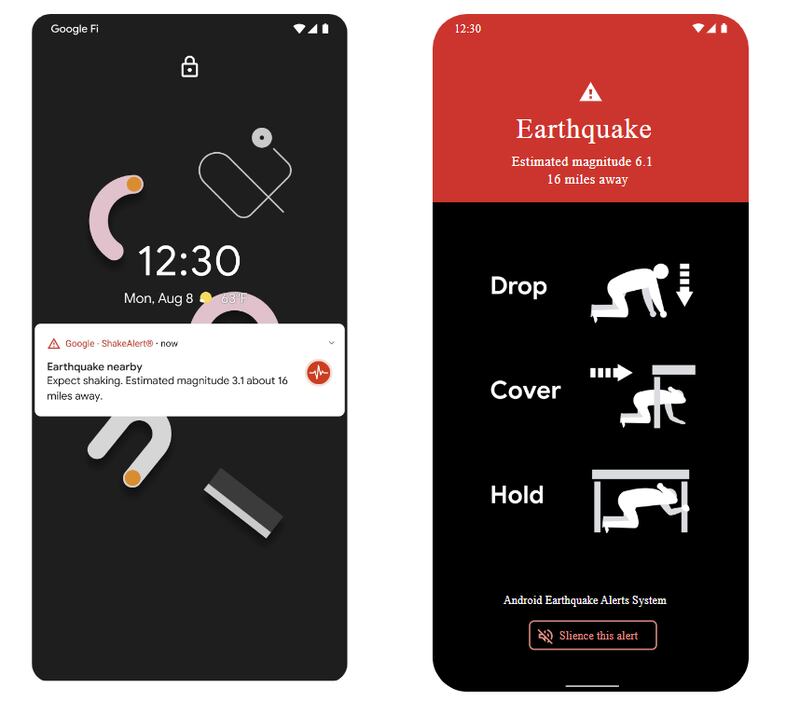 Android tiene dos tipos de notificaciones diseñados para alertar a los usuarios de un terremoto. Ambos tipos de alertas se envían solo en caso de terremotos de magnitud 4,5 o superior.